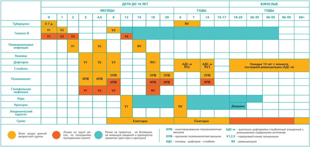 В разный период жизни необходимо поставить прививку для формирования иммунитета к болезни.